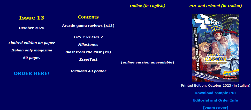Unser Hörer Milos (im Forum als Junakan unterwegs) hat gemeinsam mit ehemaligen Redaktionskollegen das italienische Fan-Magazin Zzap!Raine neu aufgelegt. Das Heft widmet sich diesmal ganz den Arcade-Spielen auf Capcoms CPS-1- und CPS-2-Boards – also Klassikern wie Final Fight oder Street Fighter II.