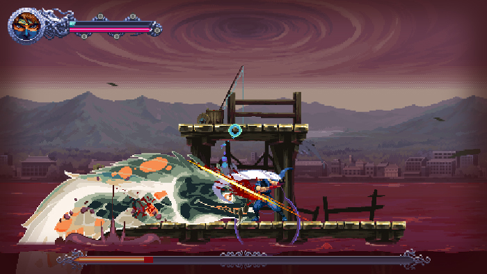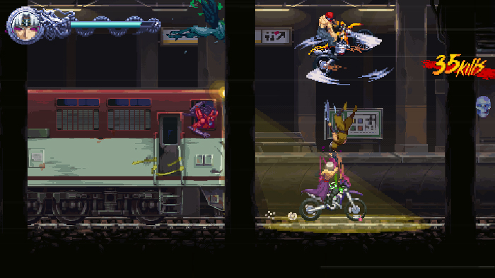 Storybedingt „verschmelzen“ Kenji und Kumori recht bald miteinander, mit einem 2-in-1-Charakter hat man nun ein relativ großes Arsenal aus Nahkampf, Fernkampf und anderen Ninja-Tricks zur Verfügung. Die Levels sind fordernd, Steuerung und Spielgefühl sehr tight. Über ein cleveres System namens Hypercharge lassen sich besonders effektive Attacken ausführen. Der Pixelstil ist bewusst altmodisch, auch akustisch verzichtet man auf moderne Annehmlichkeiten wie Sprachausgabe. Das findet man entweder konsequent oder ein wenig zu dogmatisch, unabhängig davon ist es aber eine pure Freude, wie gut und motivierend Ragebound zwischen Kämpfen und Sprungpassagen changiert.