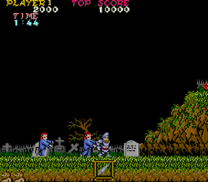 Ghosts ’n Goblins, am 19. September in Japan erschienen, war ein knallharter Arcade-Actiontitel, der durch sein forderndes Gameplay und das ungewöhnliche Rüstungssystem Kultstatus erreichte. Es begründete eine langlebige Capcom-Serie.