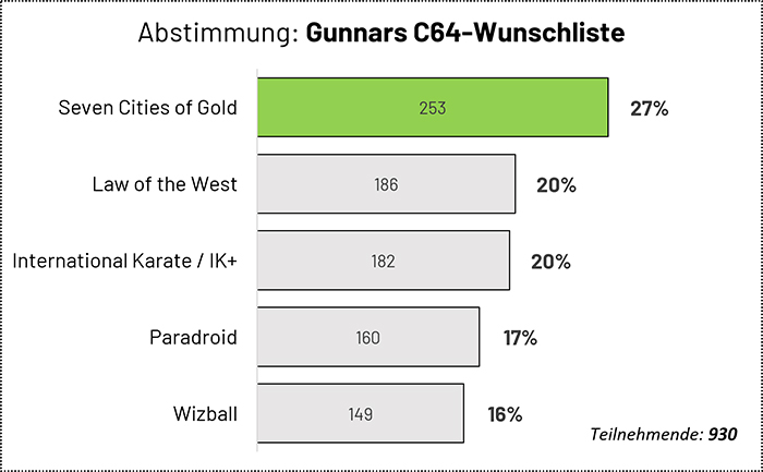 Stay Forever: Gunnar konnte nicht mehr. All die PC-Spiele, all die Konsolenspiele – er vermisst einen Titel von seiner Lieblingsmaschine, dem C64! Also haben wir fünf tolle Spiele zur Wahl gestellt, die alle damals zu seinen Favoriten gehörten. Nun hat Gunnar ja eigentlich nie einen Zweifel daran gelassen, dass ihm insbesondere Paradroid und Wizball besonders am Herzen liegen. Die Wahl der Leserinnen und Leser fiel also auf … Seven Cities of Gold. (Jubelschreie von Chris hier bitte dazudenken.) Das nächste Thema wird also das Konquistadoren-Spiel von 1984 aus der Feder von Dani Bunten. Gunnar hat ein bisschen gemault, aber das Spiel steht ja nicht umsonst auf seiner C64-Wunschliste – ihr könnt also von Beileidsbekundungen absehen.