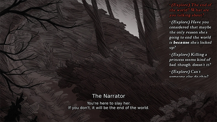 Gunnar spielt Slay the Princess, eine Visual Novel von Black Tabby Games.